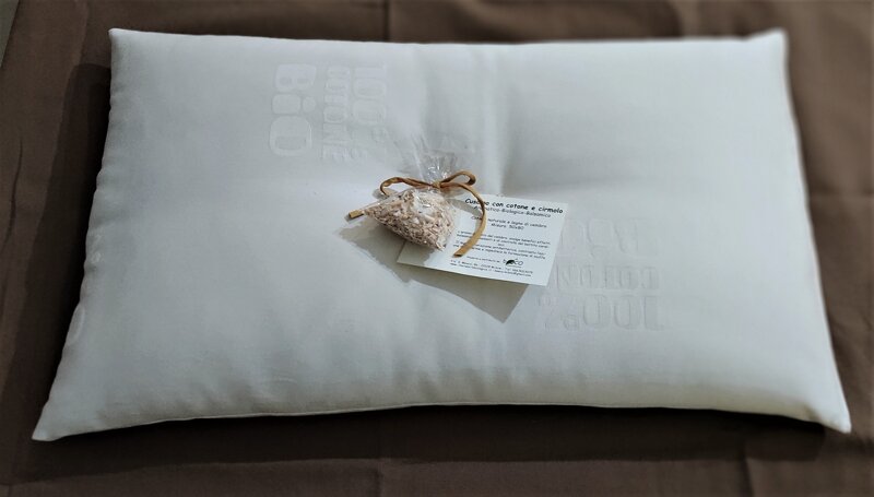 Cuscino in cotone sodo naturale e riccioli di cirmolo,
